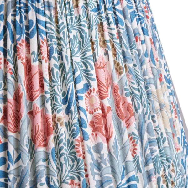 14cm tall tapered shade in indigo and barbed berry bower printed cotton by morris & co. see dimensions