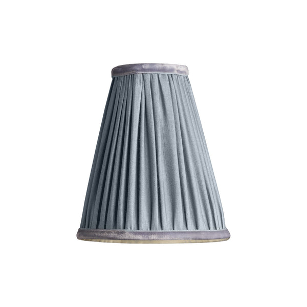 The wizard hat shade very contemporary and minimal, in gathered silk with matching velvet tapes. A striking topper to almost any tall, skinny lamp.