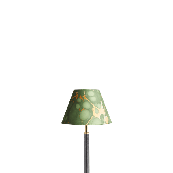The marbling of paper is a craft that dates back hundreds of years, and it is fascinating to watch. Paints and oils are carefully dropped onto a thickened water, and are then raked and stretched to create the pattern. The paper is then slowly laid on top and once imprinted removed from the liquid and dried. No two pieces of paper can ever be the same. We are thrilled with these patterns - bold and brilliant. Please note that due to the smaller surface area required to create this effect, this shade will have two seams.