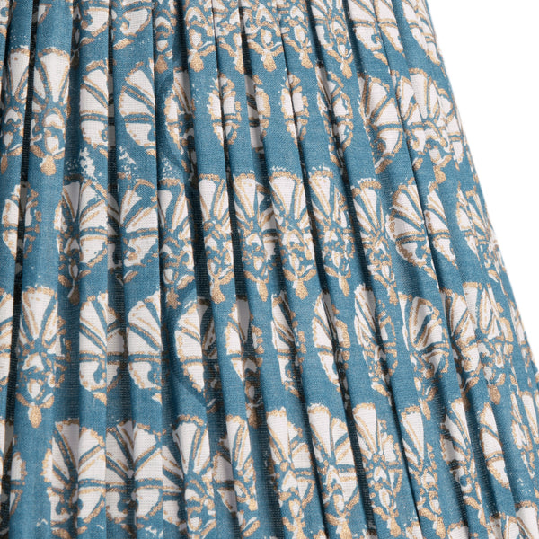 40cm straight empire gathered lampshade in turkish blue dervish block printed cotton see dimensions