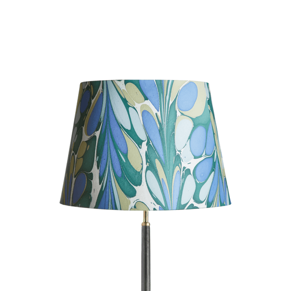 40cm straight empire shade in hand made marbled paper in green and blue roya see dimensions
