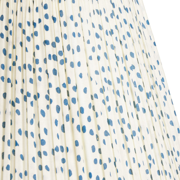 A soft cotton shade block-printed by hand by incredibly skilled craftspeople in a workshop near Jaipur and then pleated and lined - with little spots of blue.