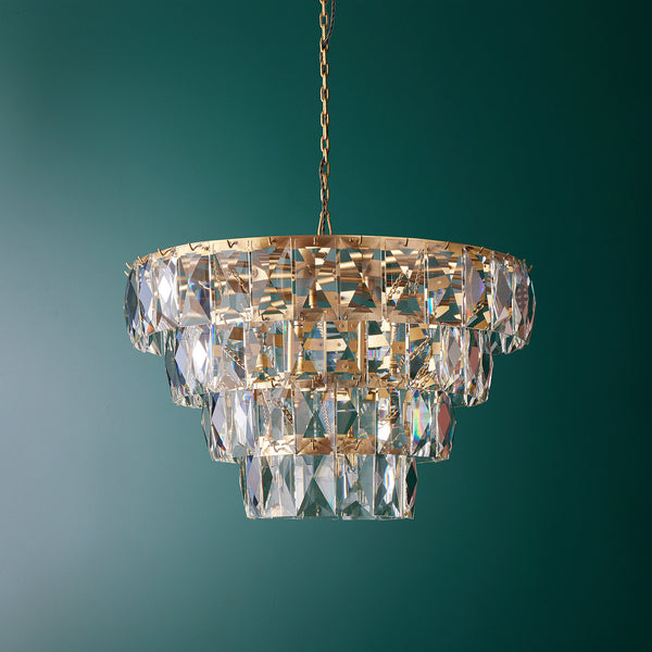 Our Conchita chandelier balances perfectly (...in our opinion) between being unashamedly gorgeous and sparkly, without being too showy and over the top. The rectangular cut glass refracts the light so beautifully we challenge anyone who chooses to live with the light not be uplifted by it. Comes with a level of self-assembly required.