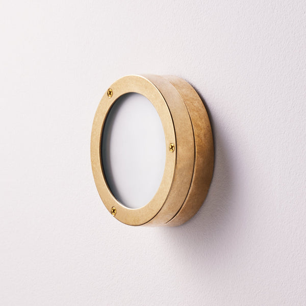 A pared back, delightfully minimal, flush bulkhead light. Solid brass and tough, but equally delightfully elegant.
