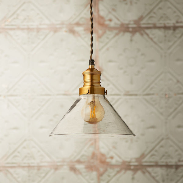 Clean lines and slick design give the Dexter a contemporary feel, with character and warmth. Usable in all sorts of environments, this sturdy light is made from solid brass and a glass shade.