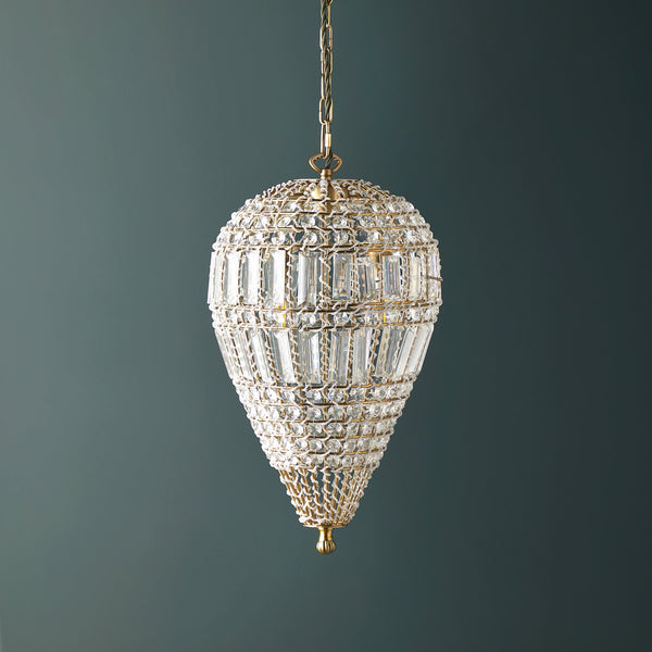 Rather like a giant glass hot-air balloon, it will hang and sparkle majestically wherever you choose to place it. Literally hundreds of different pieces of glass with different cuts and shapes confer high marks for shimmering.