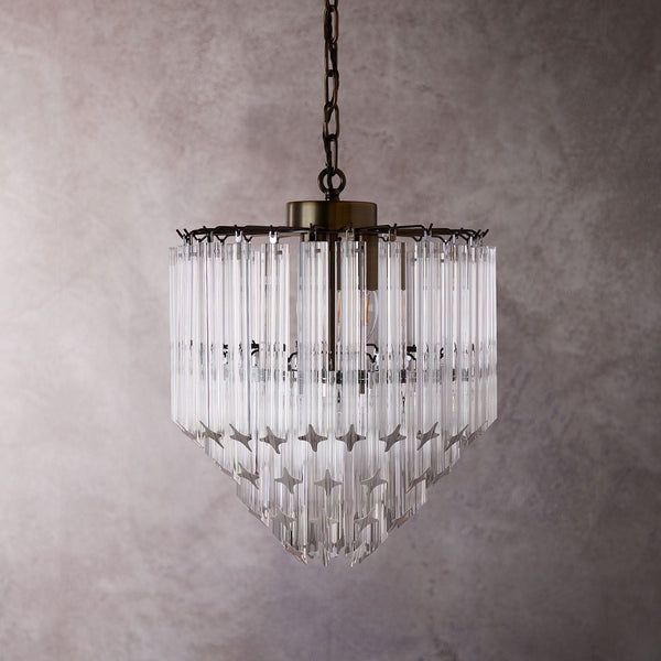 OK, so the impossibly sophisticated Italians have a word for them...Quadriedri...in the UK it’s a trifle more wordy; those beautiful, heavy, criss-crossed lengths of perfectly crystalline clear glass, diagonally cut at the end. Our smaller Leonardo chandelier has 60 quadriedri hanging together in perfect sublime harmony. The effect is staggering, and yes, you have exquisite taste. Enjoy...forever.